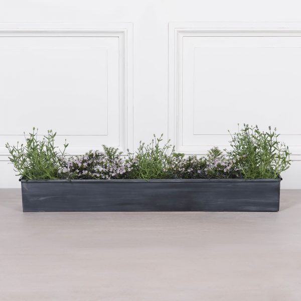 Roll Top Weathered Iron Style Metal Planter – 64cm