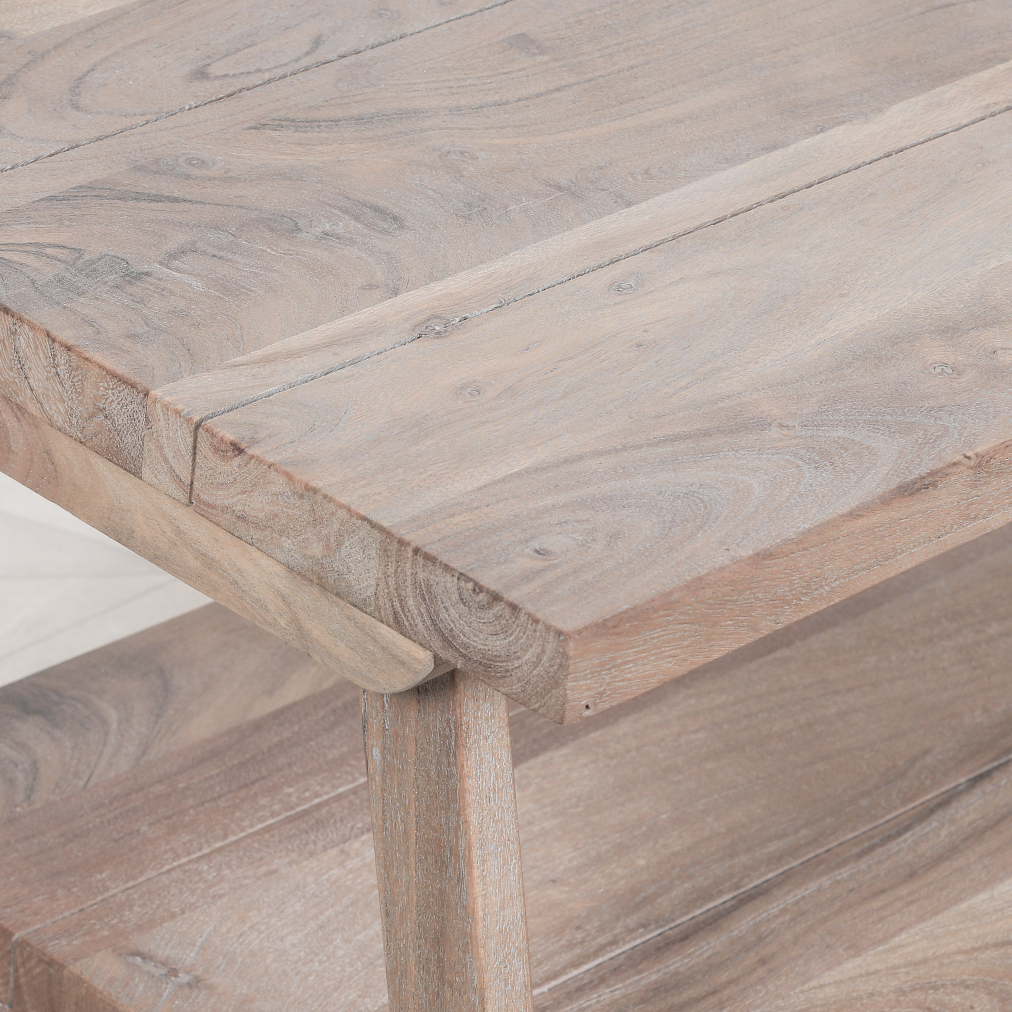 Acacia wood coffee table in rustic finish with A frame shaped legs and under storage