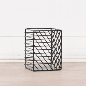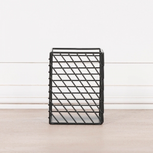 Black painted metal storage basket ideal for storage on desk, kitchen or in bathroom. Ideal use for stationary, makeup brushes, soap, sponges, cotton wool and more!