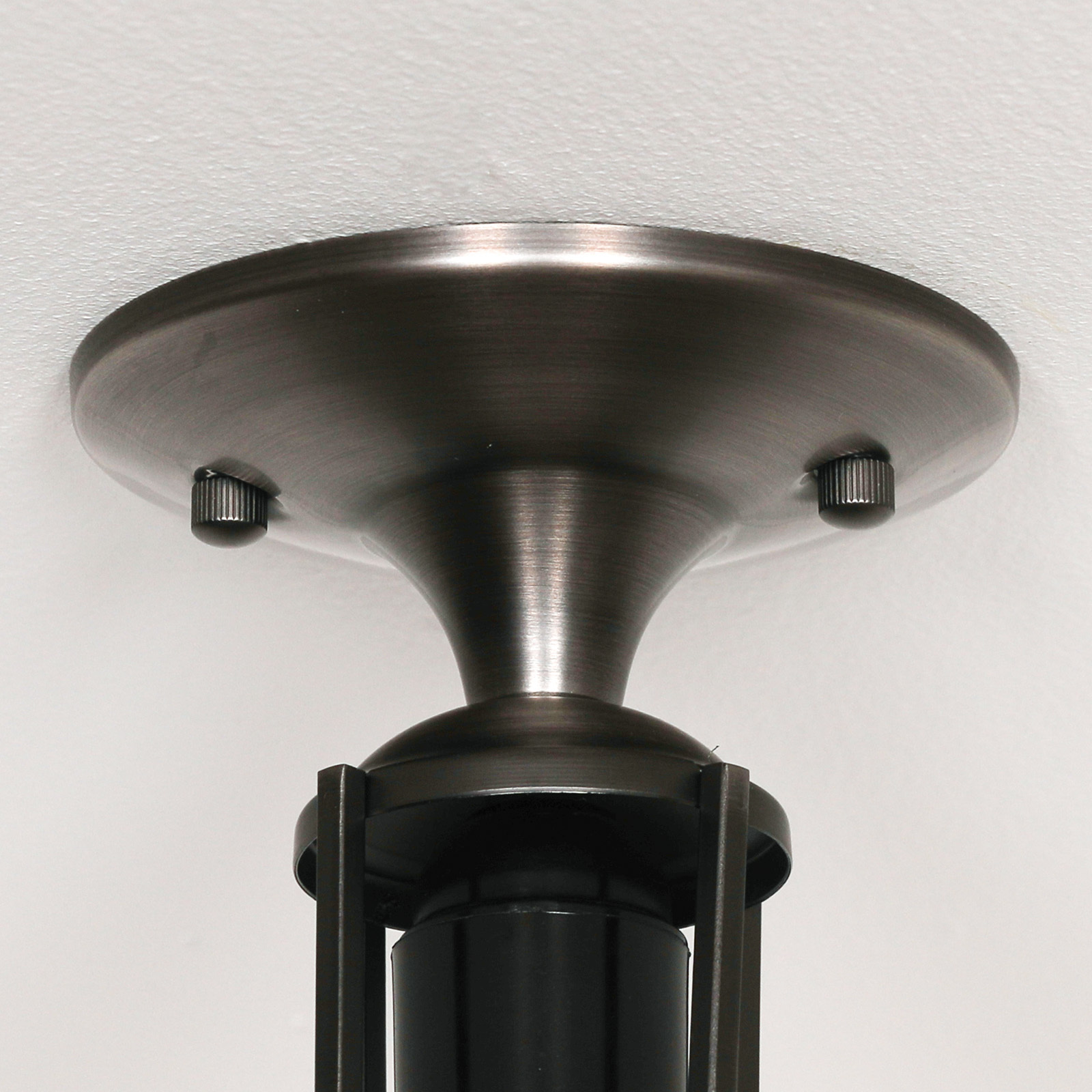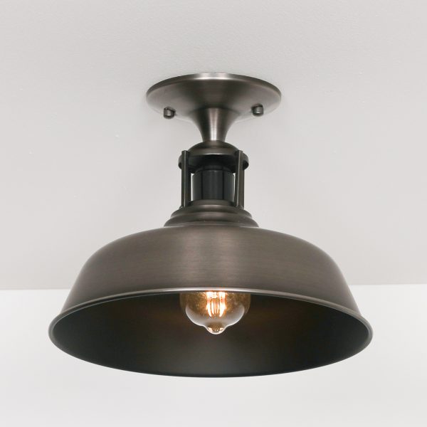 Ceiling light with brushed silver metal finishes in an industrial style.
