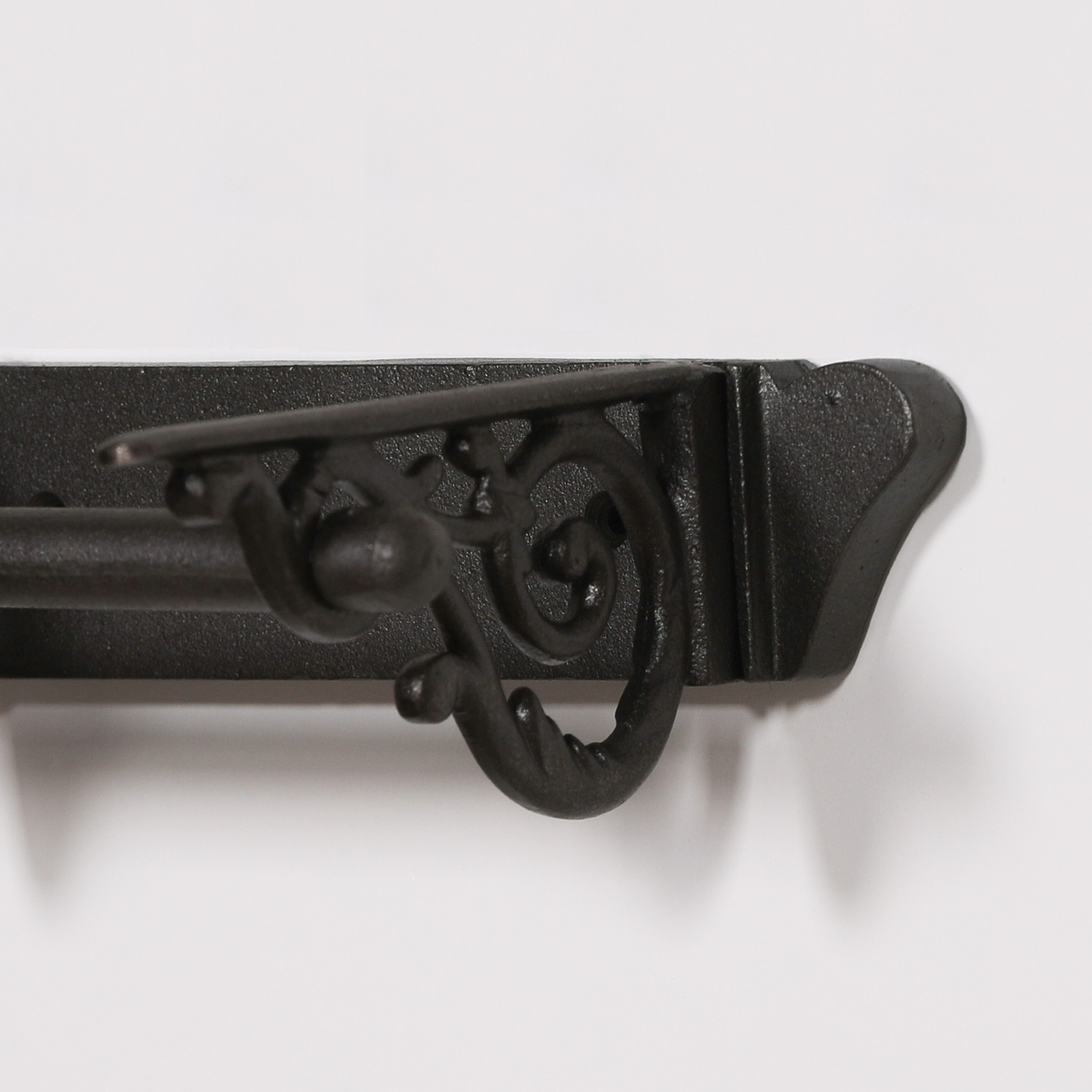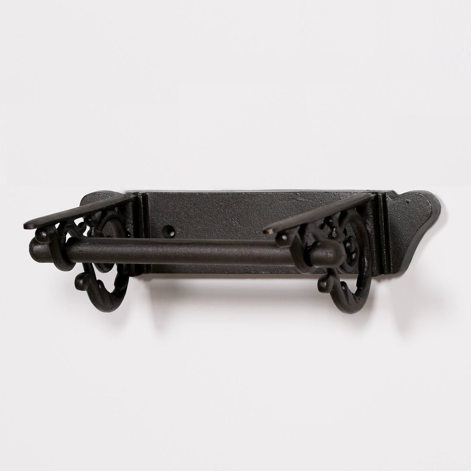 Scroll black cast iron toilet roll holder with ornate details in a Victorian style. (Toilet Roll not included)