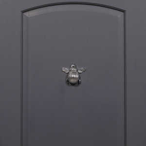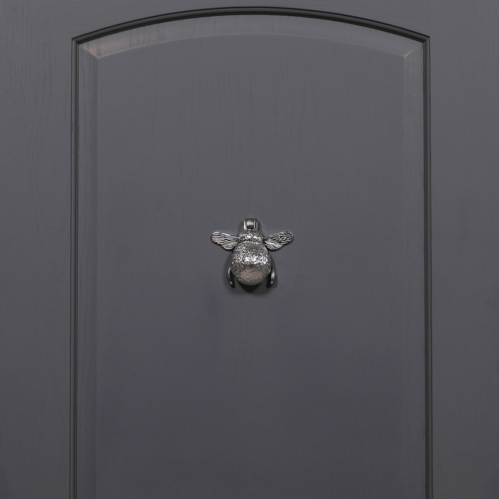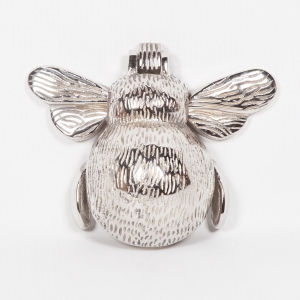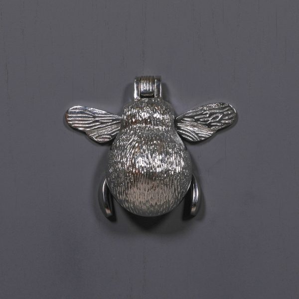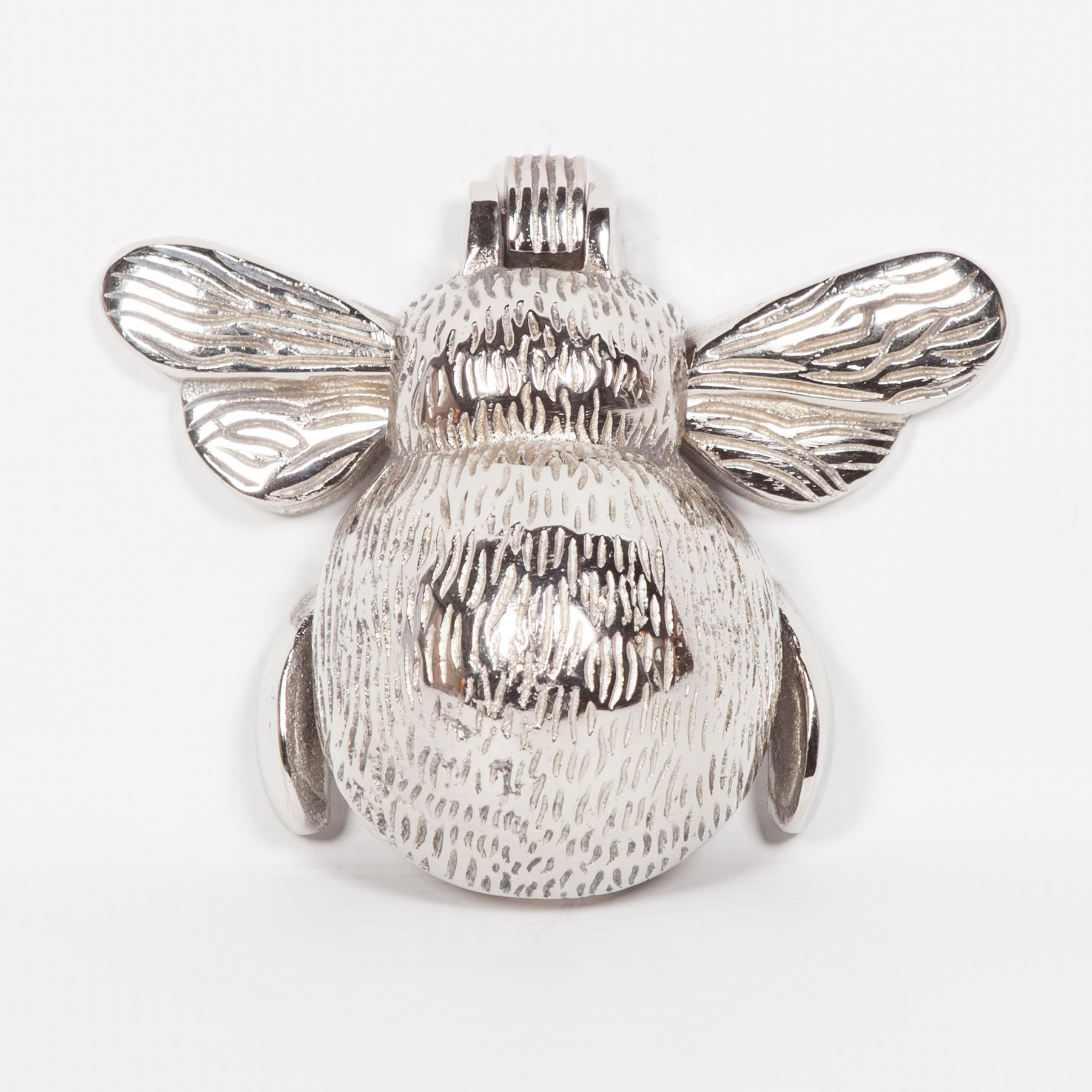 Chrome bumble bee door knocker handcrafted from polished brass with small intricate details.