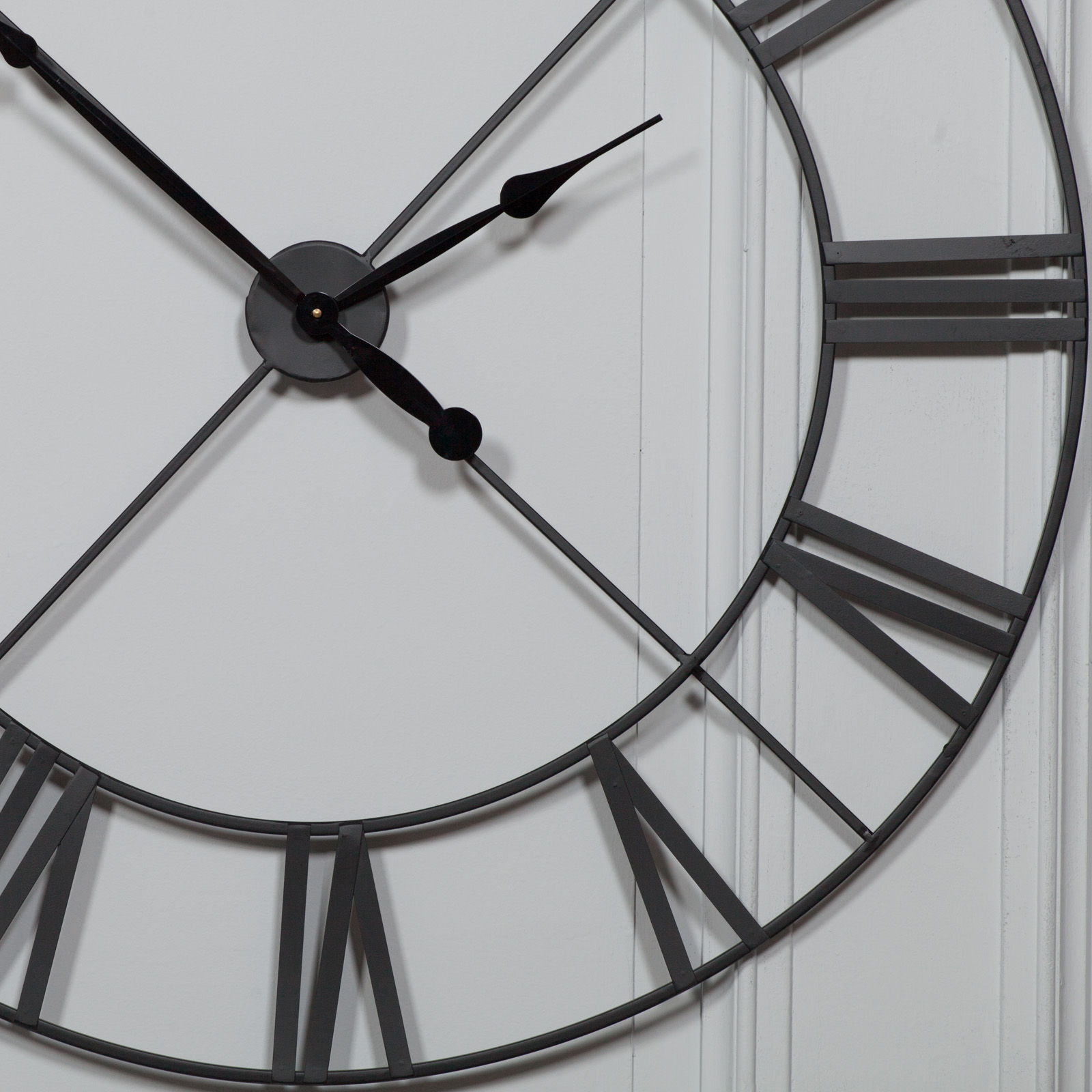 Extra-large 110cm wall clock with an open black metal frame and Roman numerals.