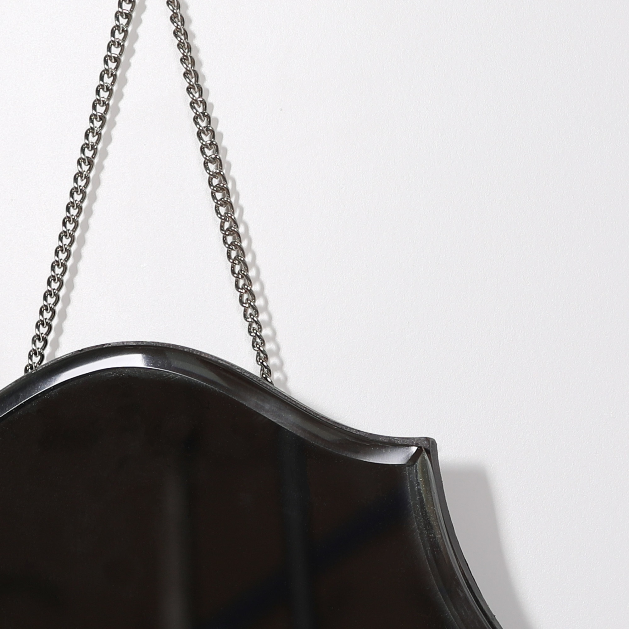 | Material | Glass Bevelled Mirror with mdf black painted backing. Chrome metal hanging chain. |