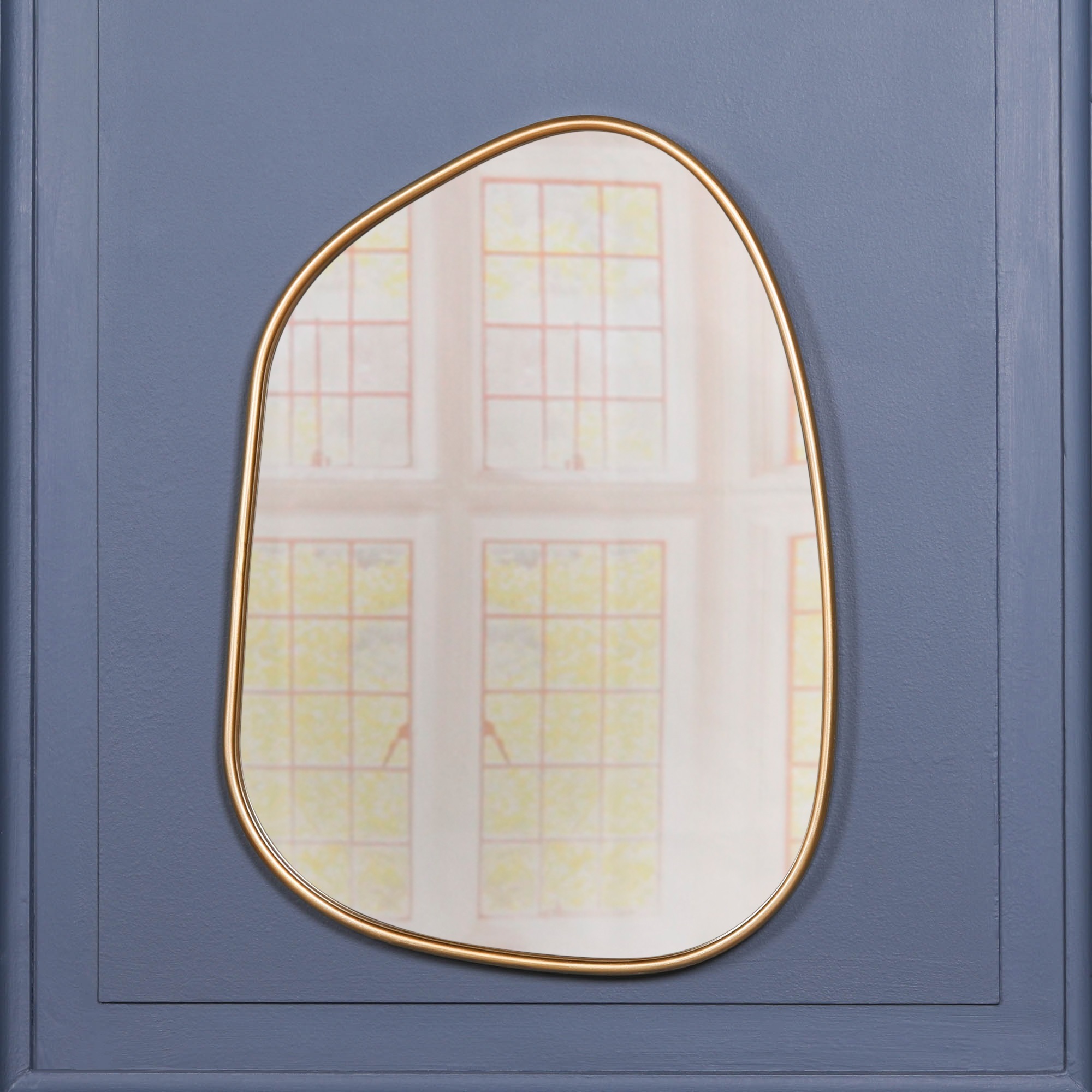Gold painted framed asymmetrical shaped metal framed wall mirror