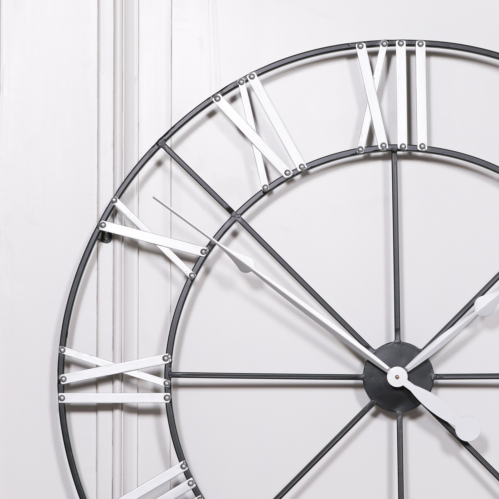 Large 102cm wall clock with a black metal frame and contrasting silver numerals and clock hands.
