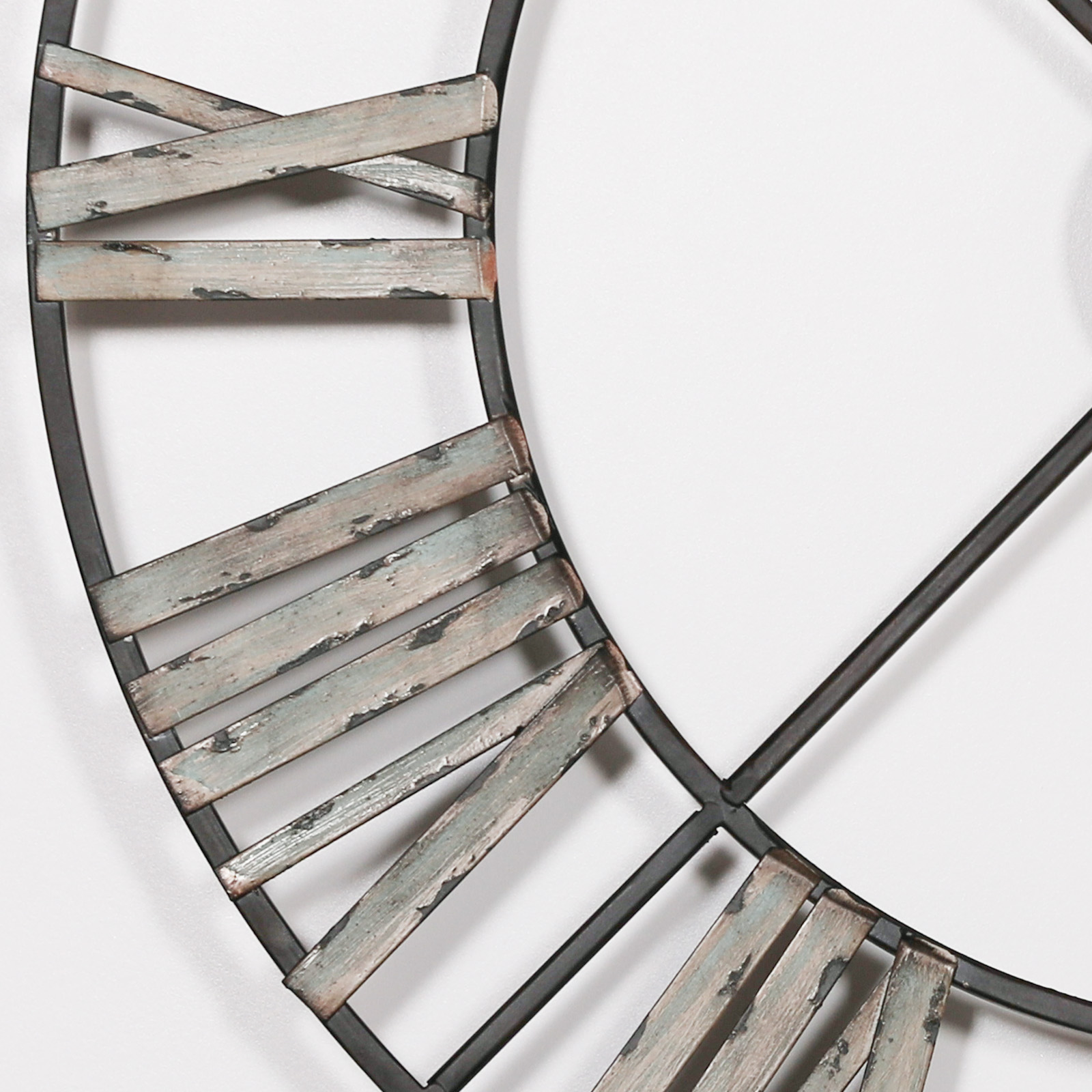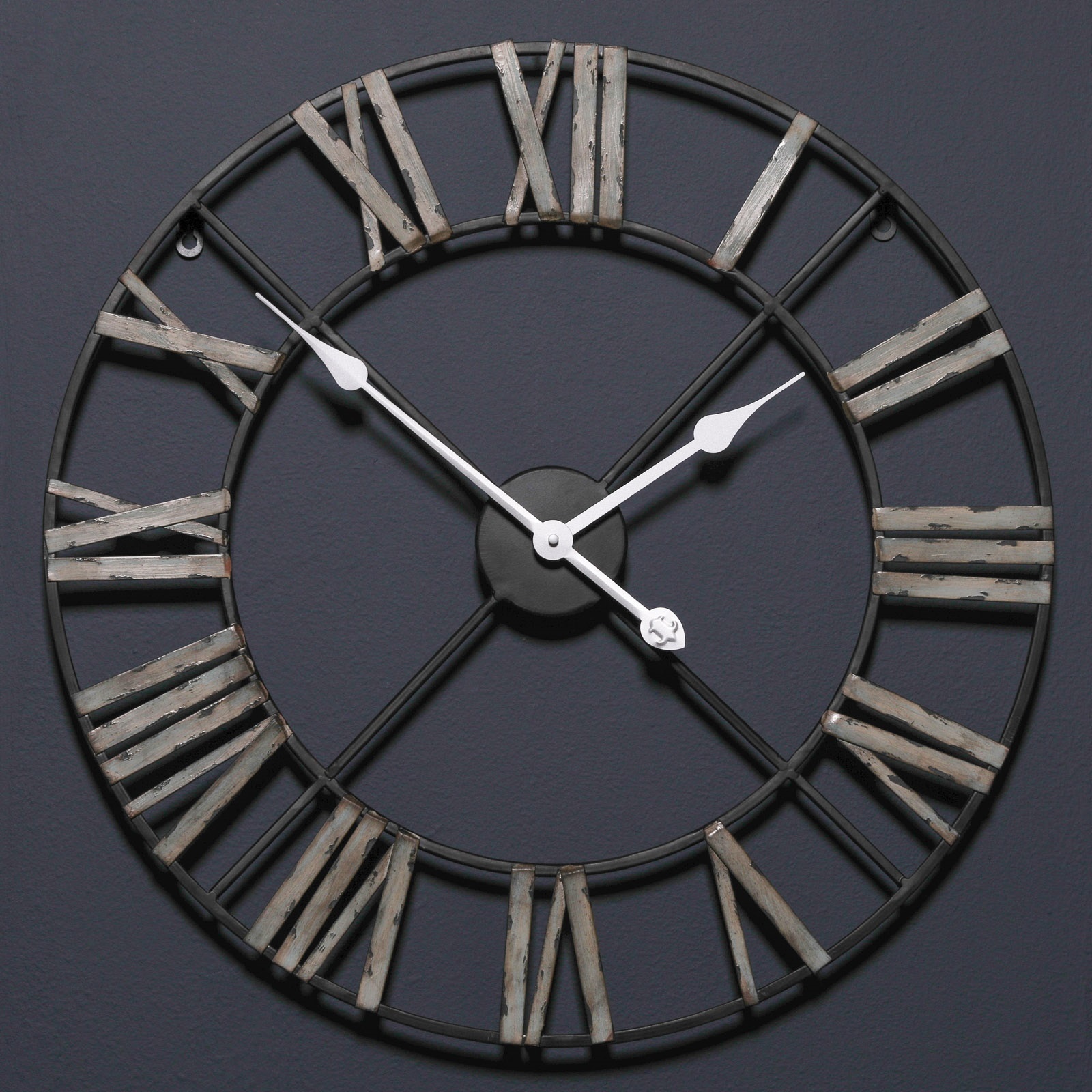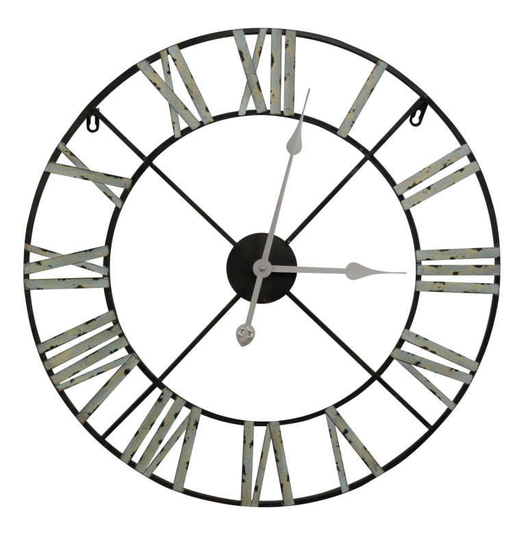 Medium 60cm wall clock in a black metal frame with aged vintage Roman numerals.