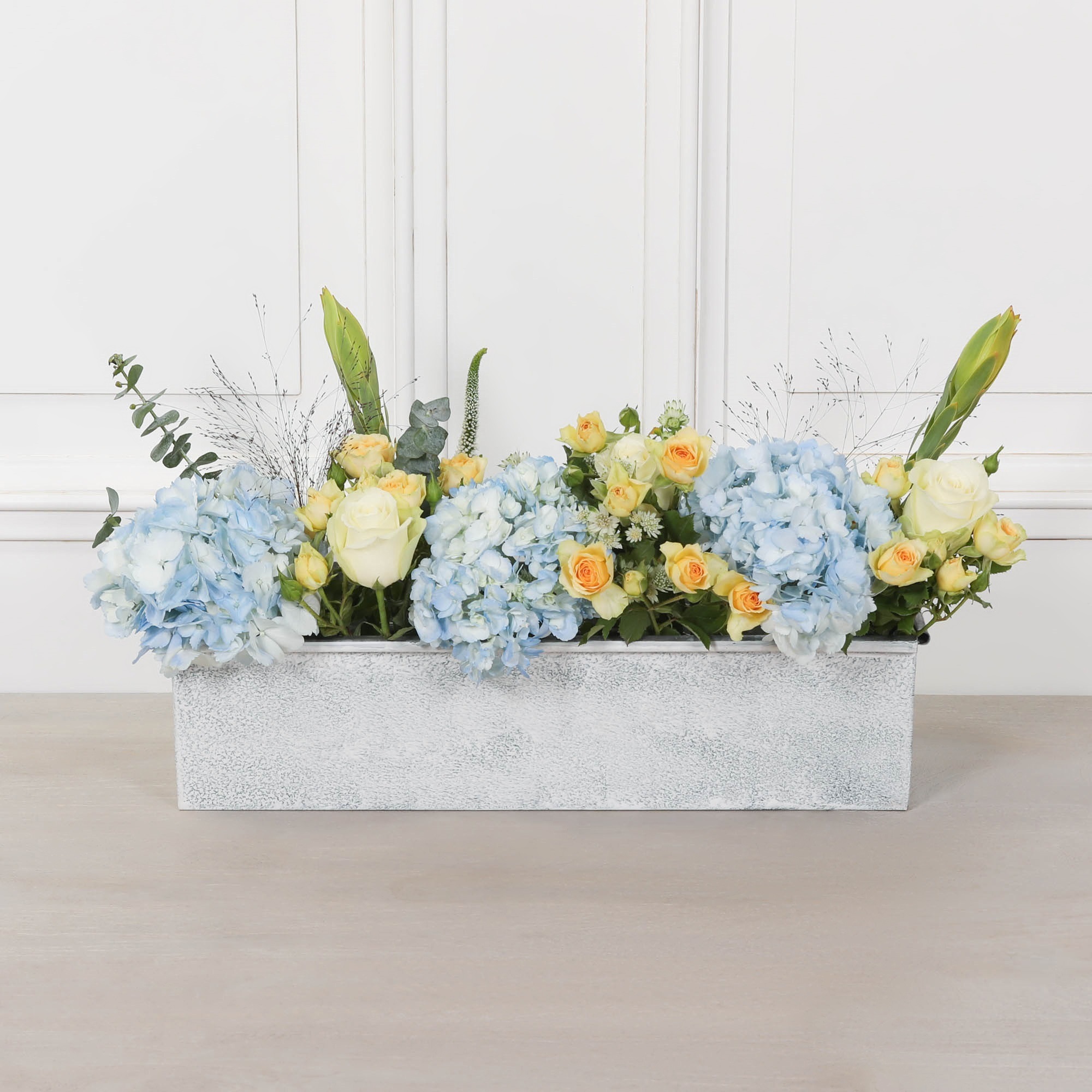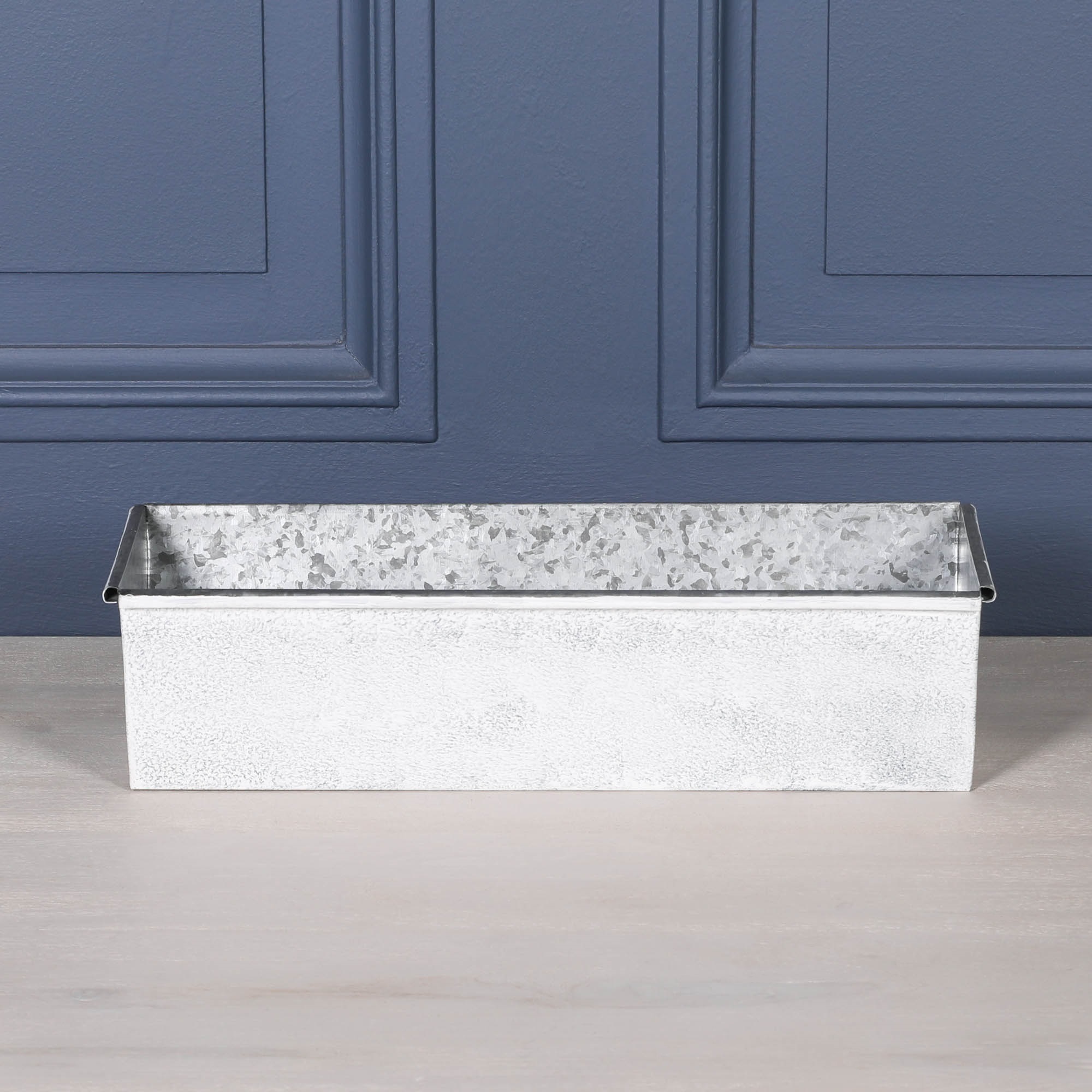 Medium sized 54cm window box roll top planter handcrafted from galvanised steel tin in a distressed vintage style.