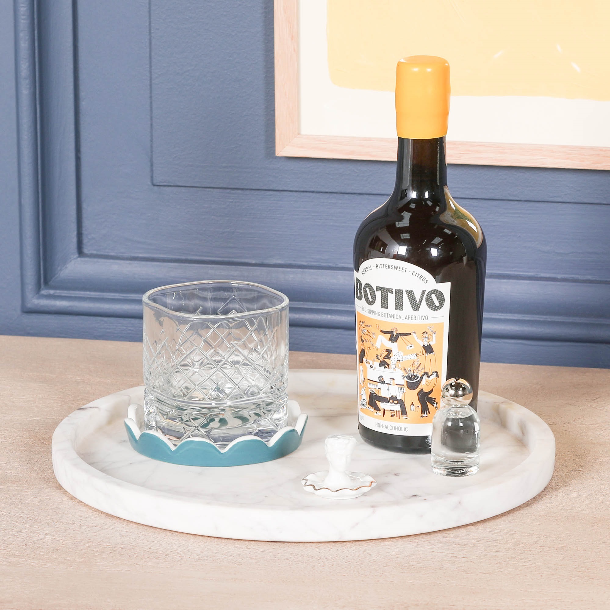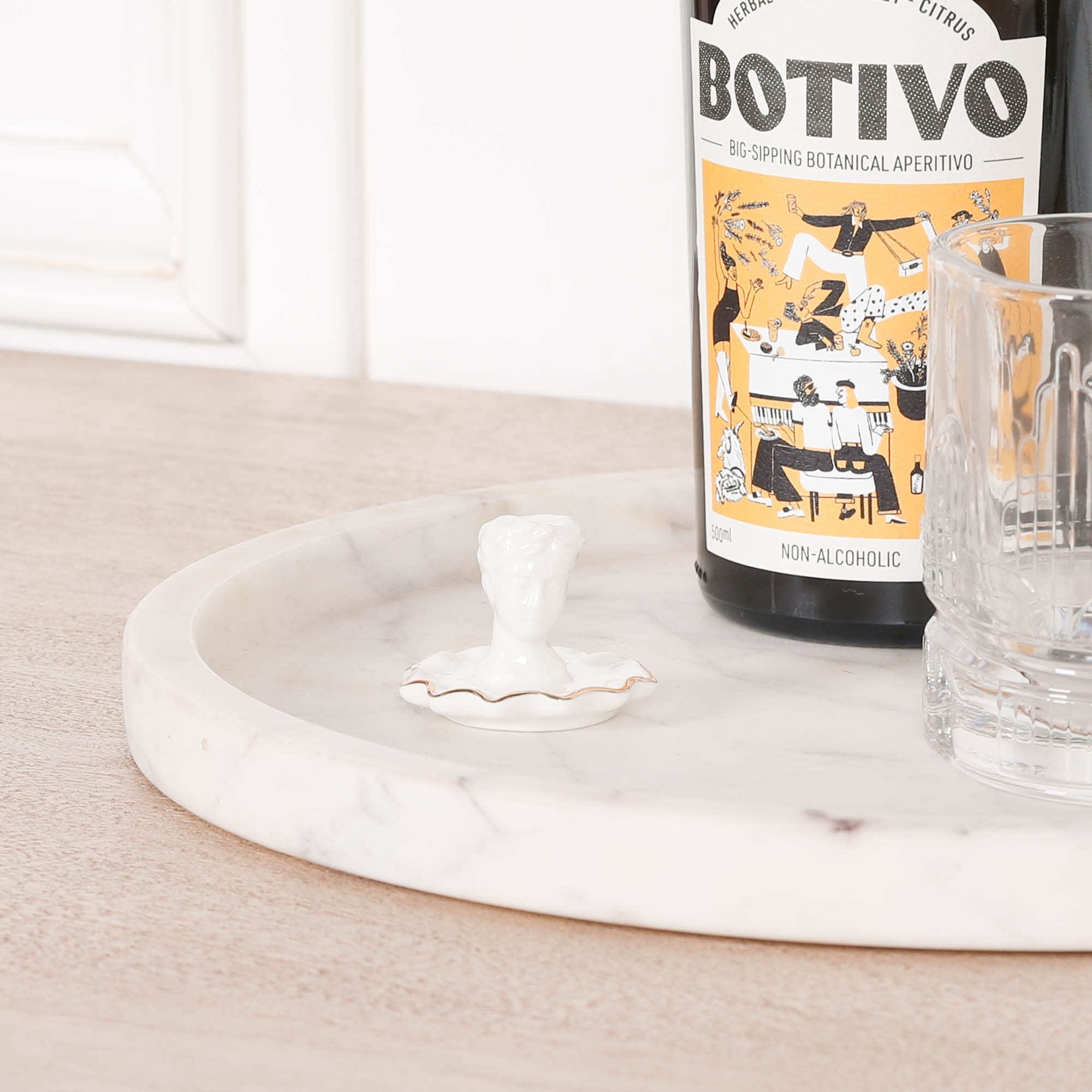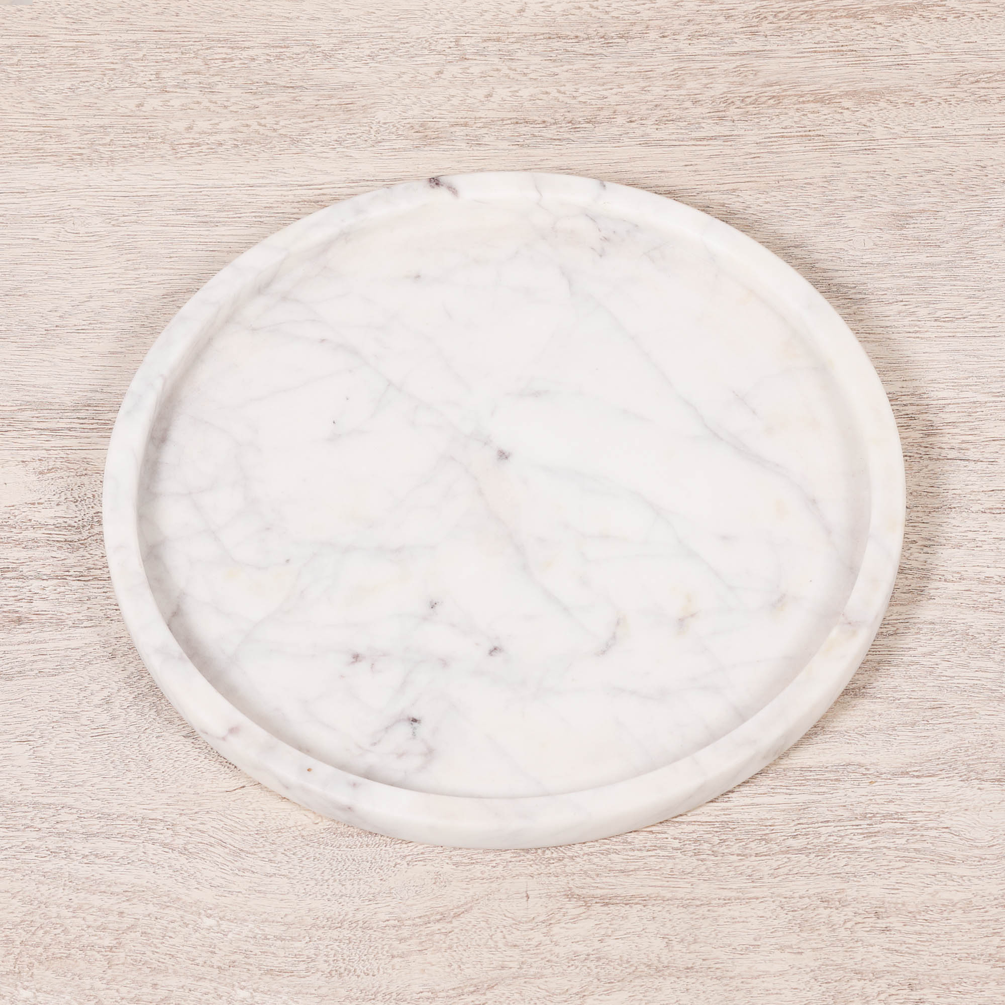 Natural Veined Marble 30cm Tray. The marble tray is ideal for use as a drinks holder, candle holder, storage tray for makeup or general storage of items.