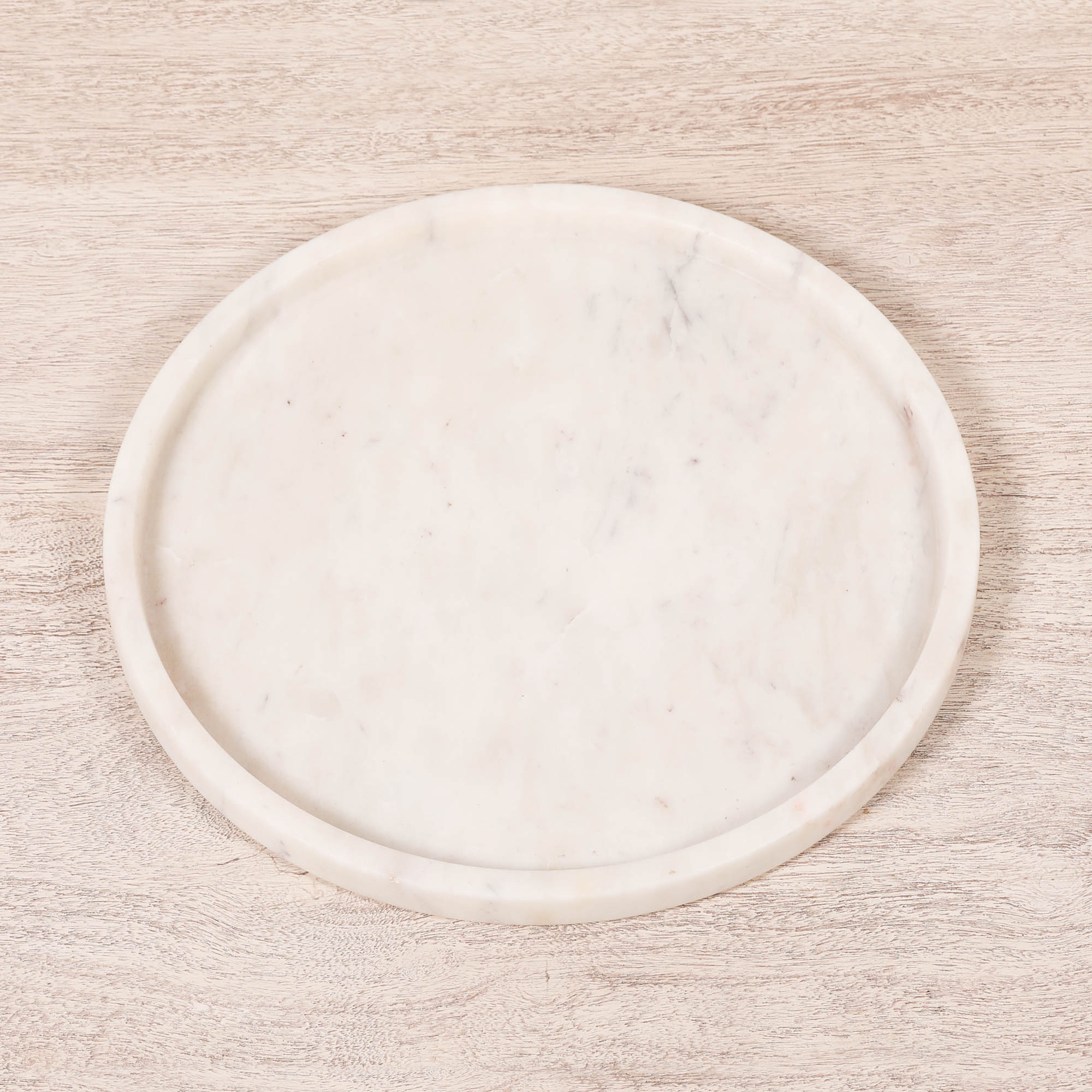 Natural White Marble 30cm Tray. The marble tray is ideal for use as a drinks holder, candle holder, storage tray for makeup or general storage of items.