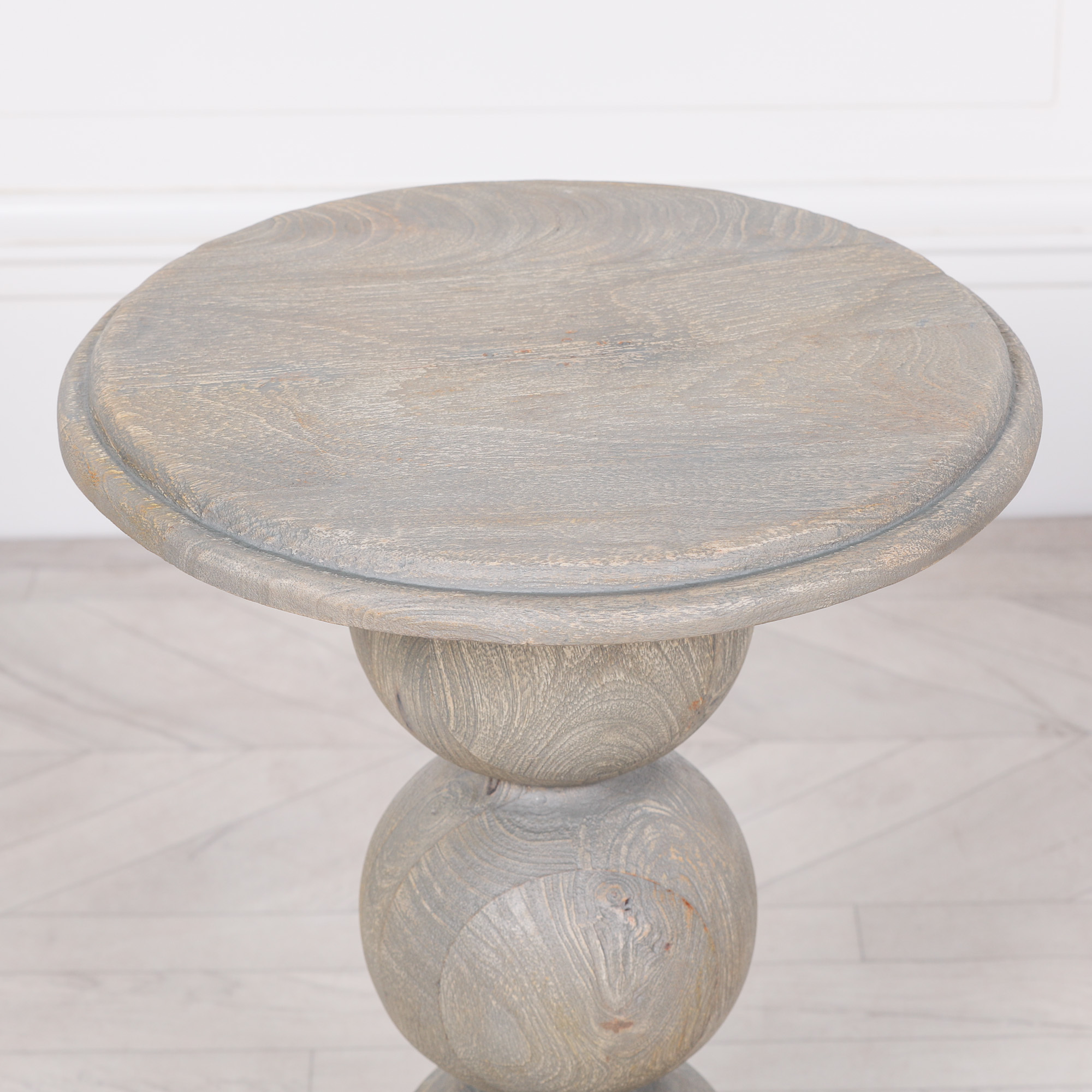 Rustic Wooden occasional side table with ball shaped column made from rustic mango wood