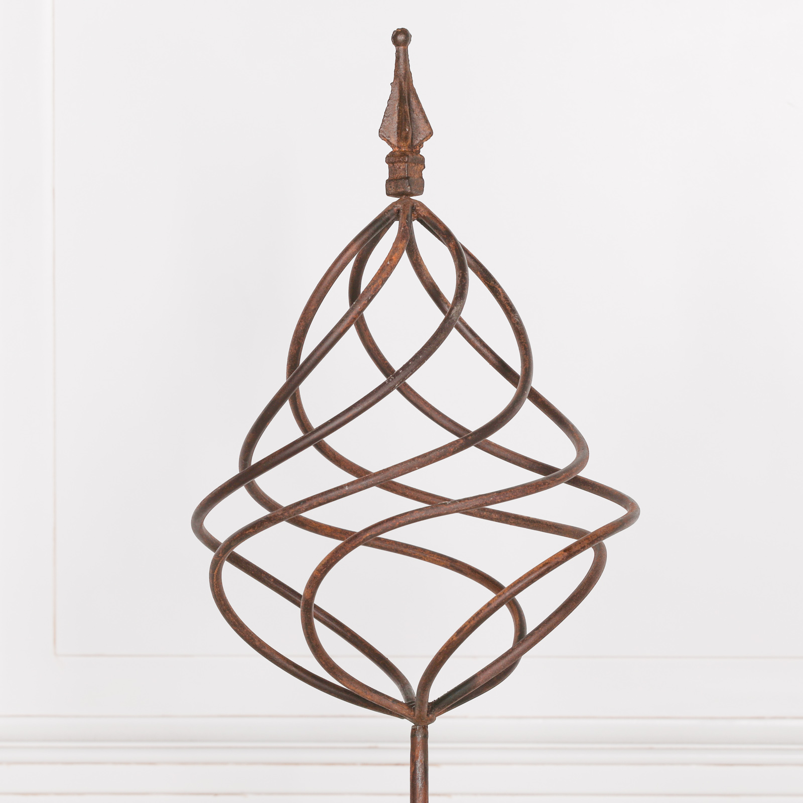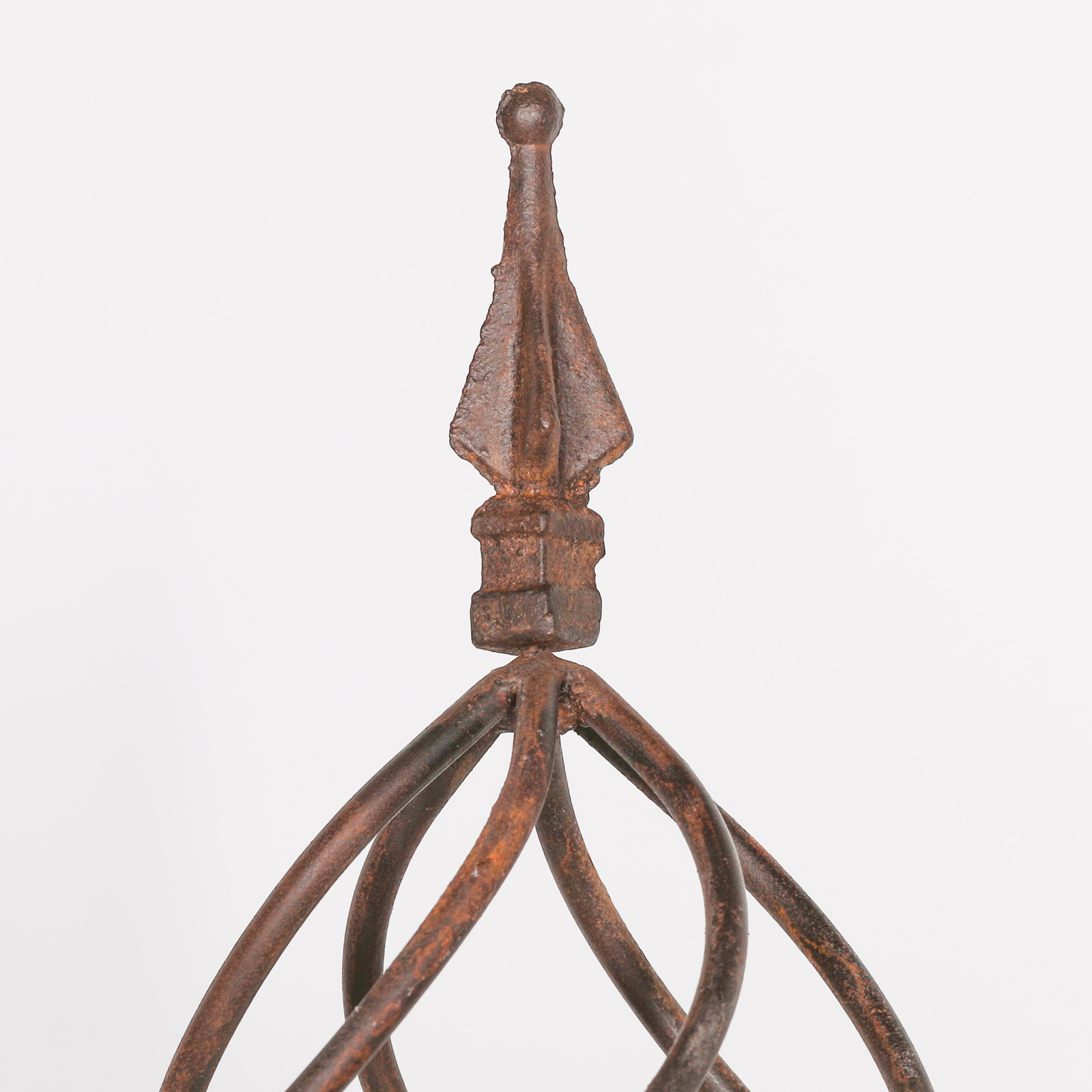 Sphere ball design garden sculpture handcrafted from iron in a vintage rustic finish.