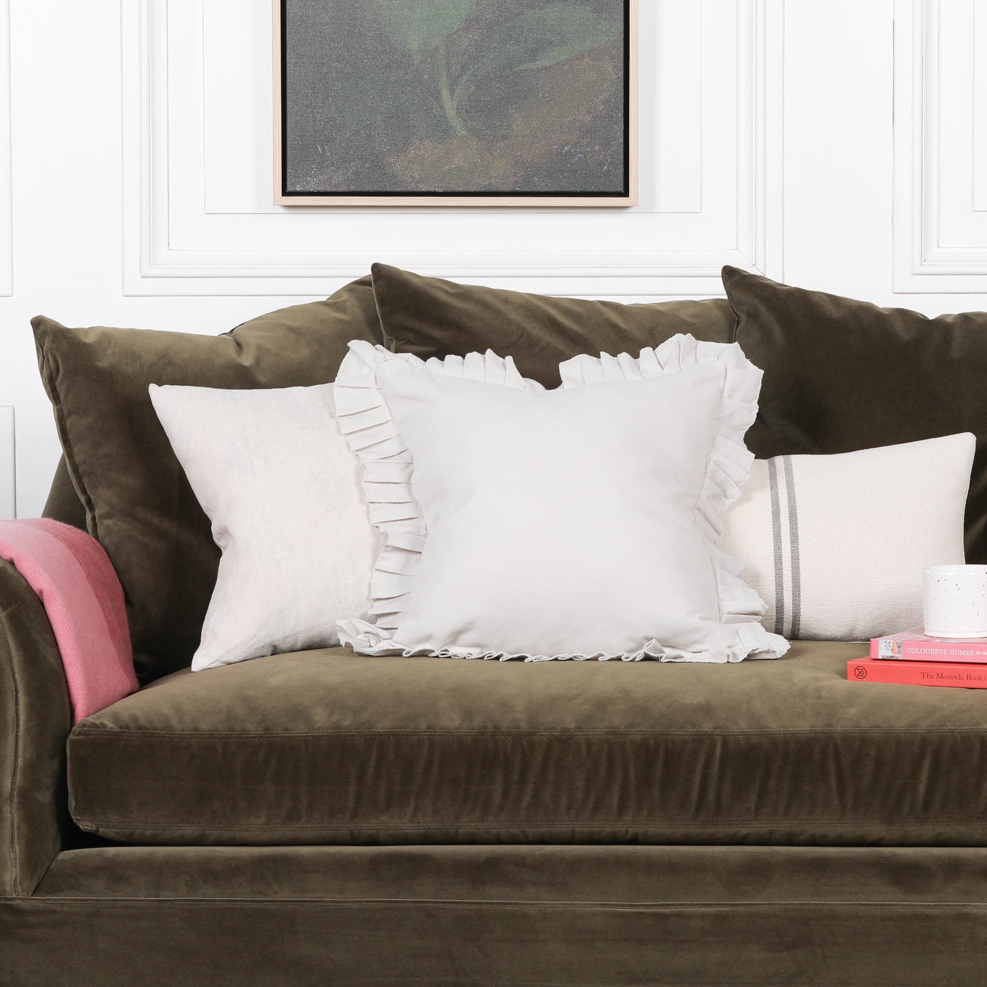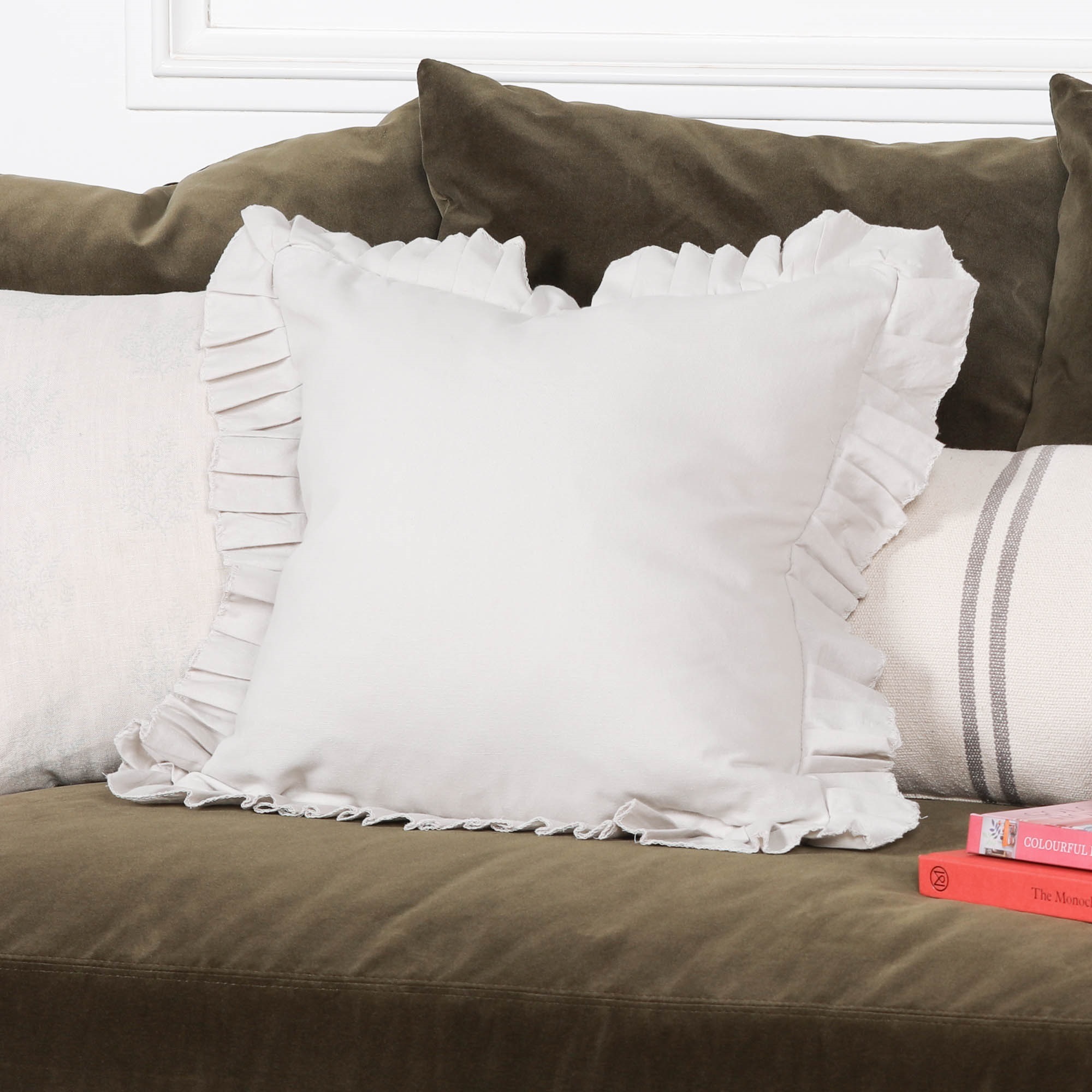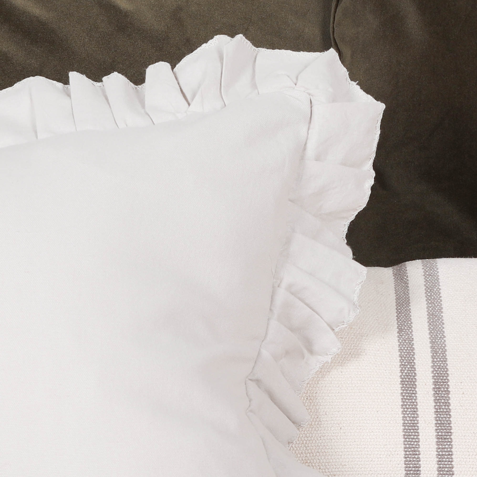 Pale grey frilly cotton cushion cover 45x45cm square. Suitable with cushion cover 51x51cm (Cushion pad recommended – product code PAD051)