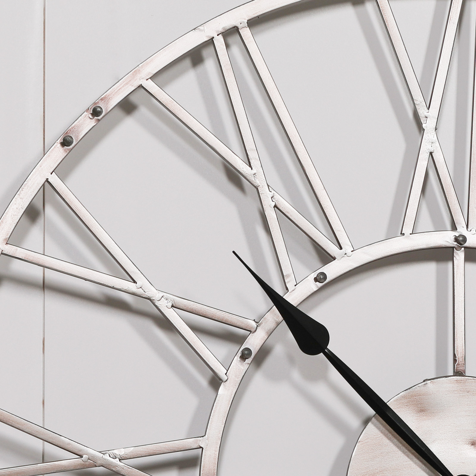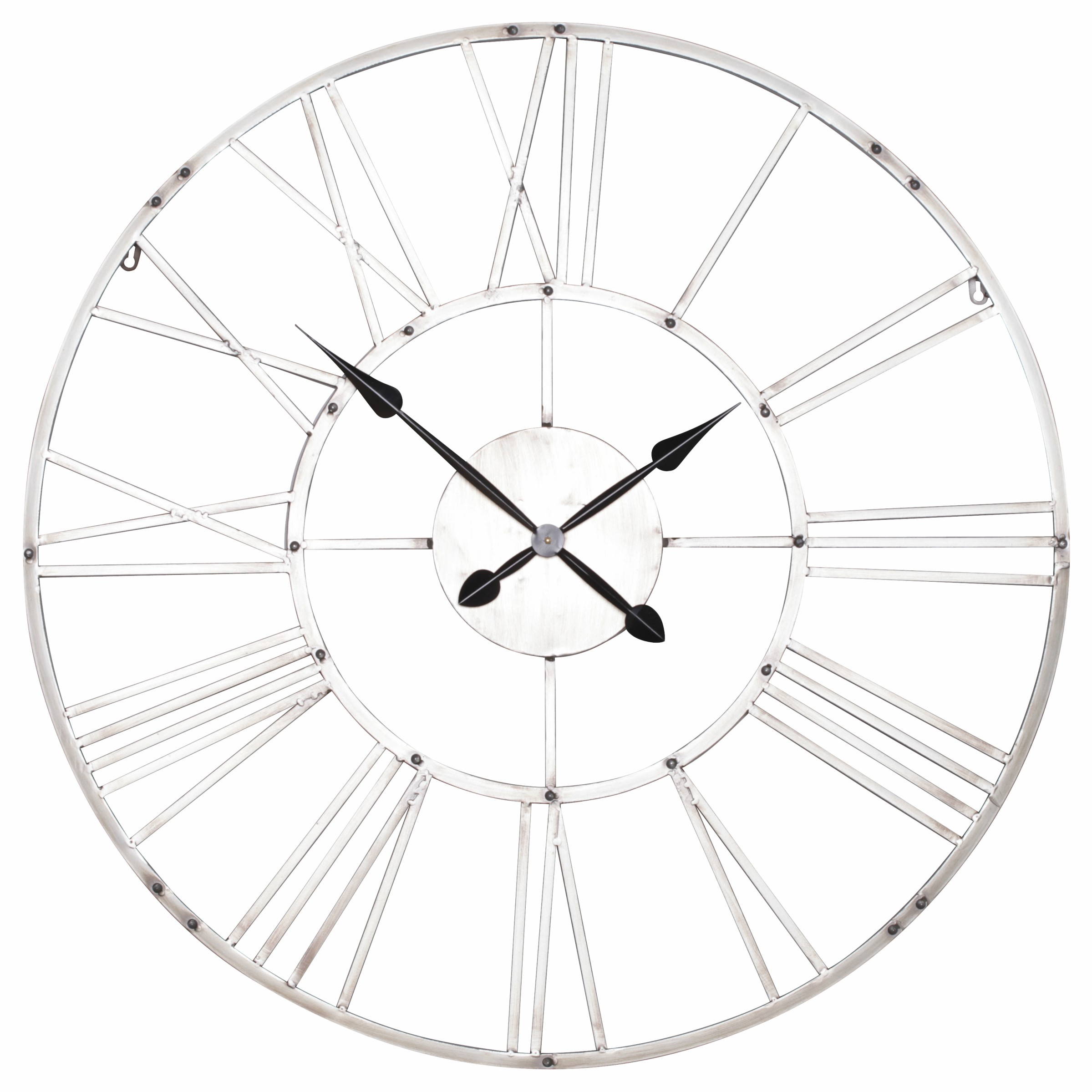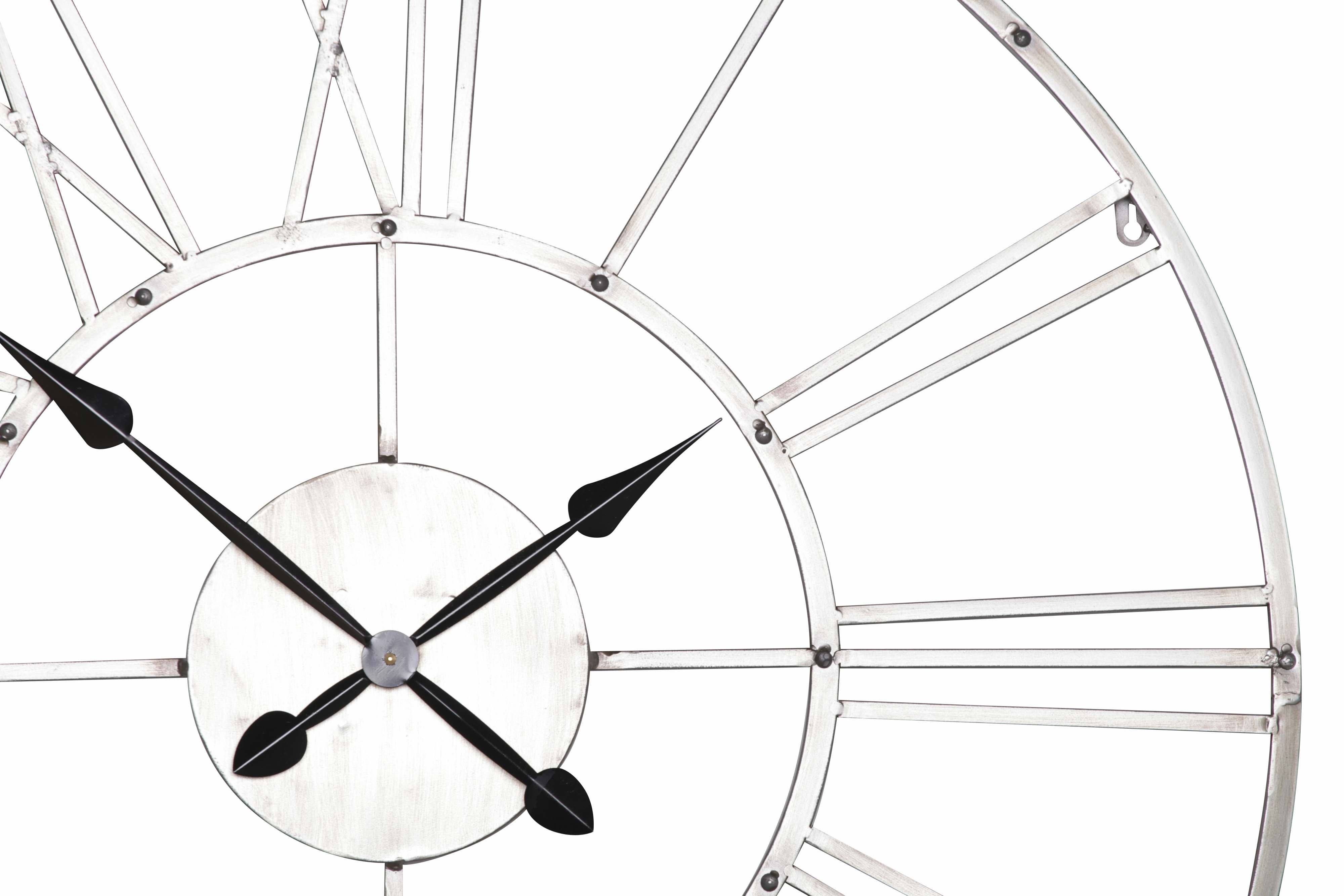 92cm wall clock in a vintage silver metal frame with black clock hands.