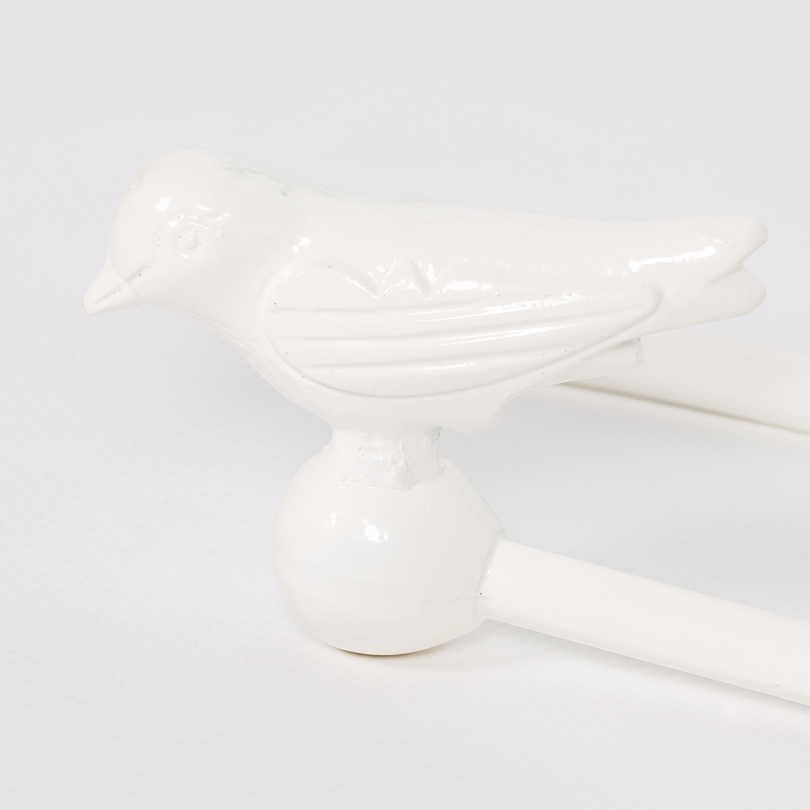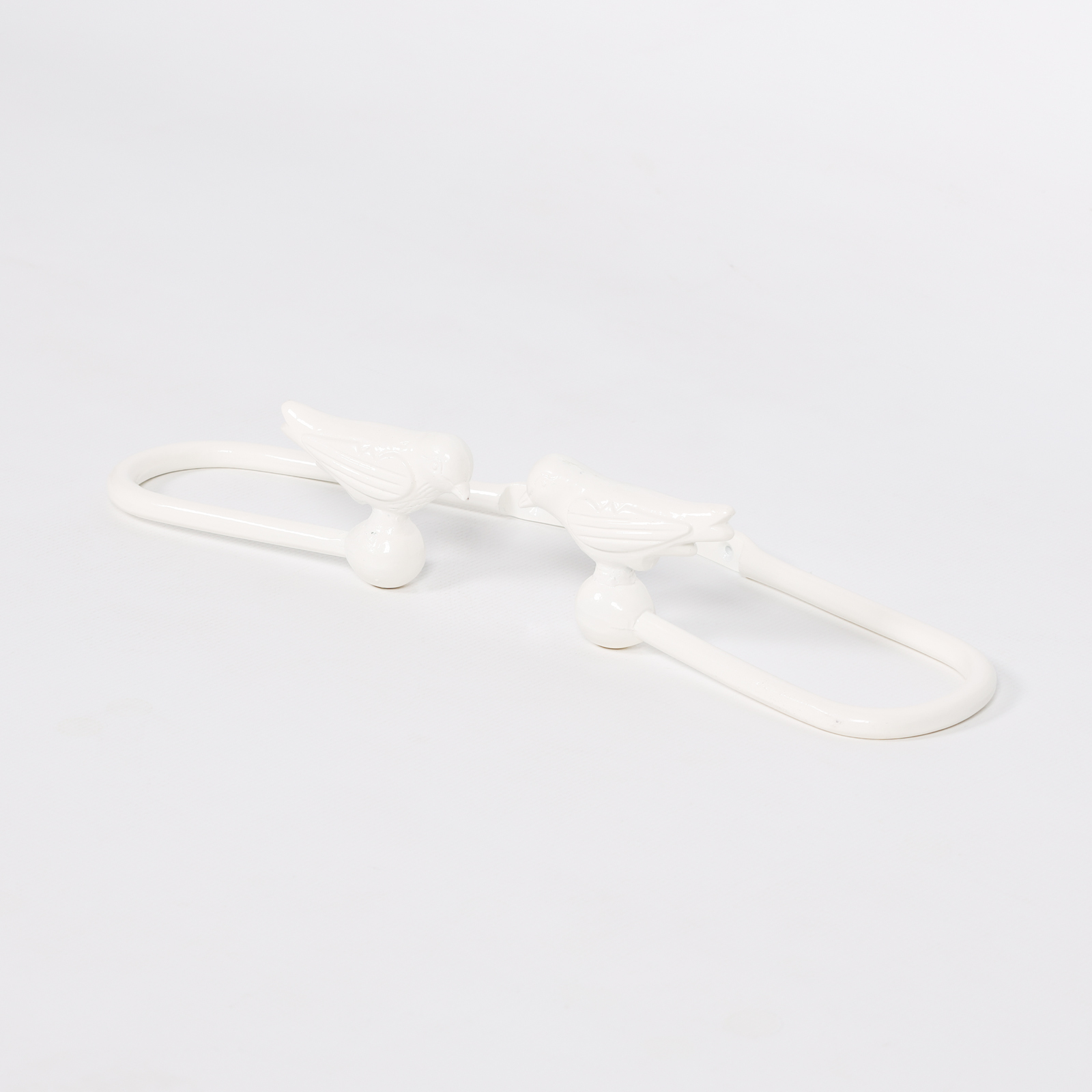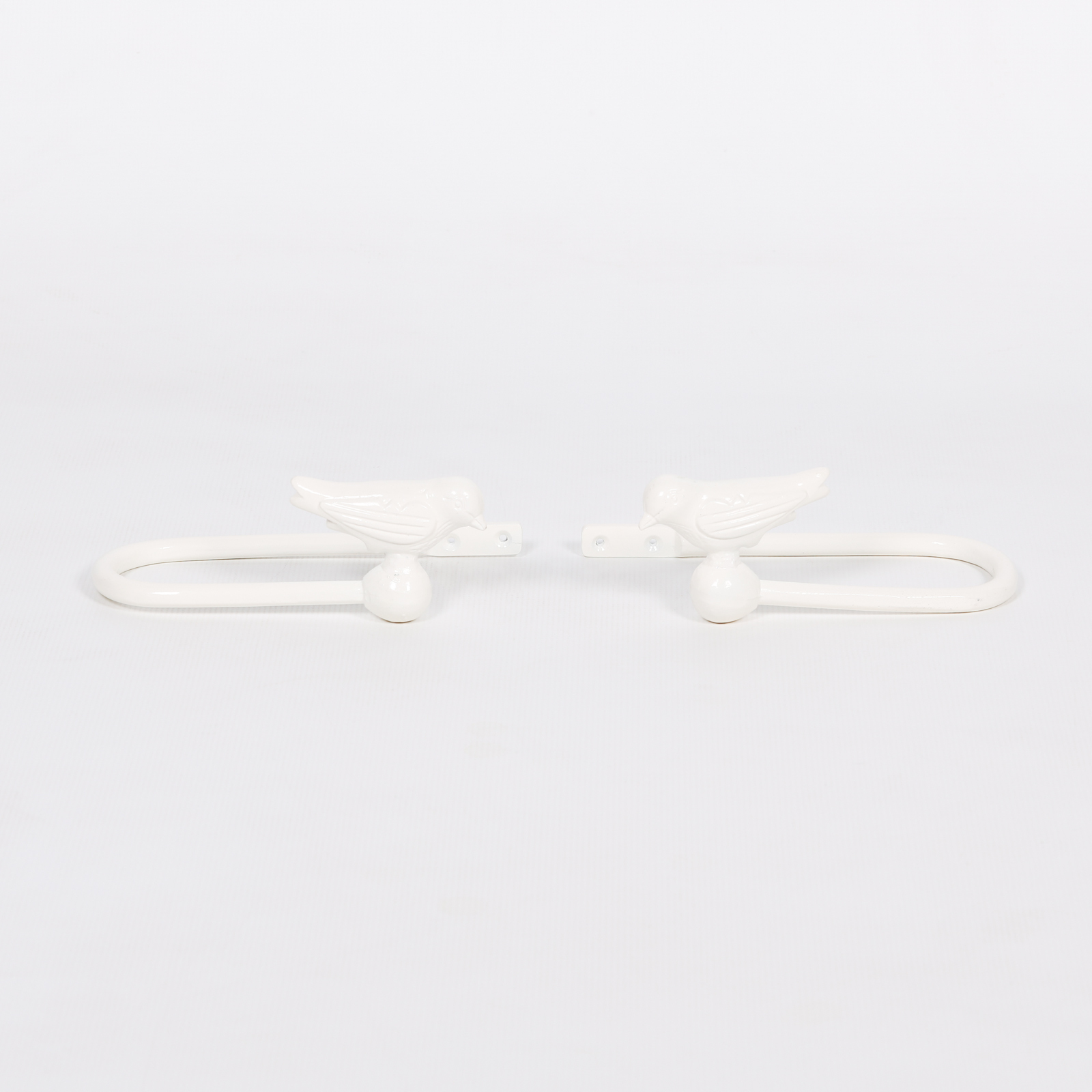 White decorative bird curtain holder set handcrafted from cast iron. (sold as a pair left & right)