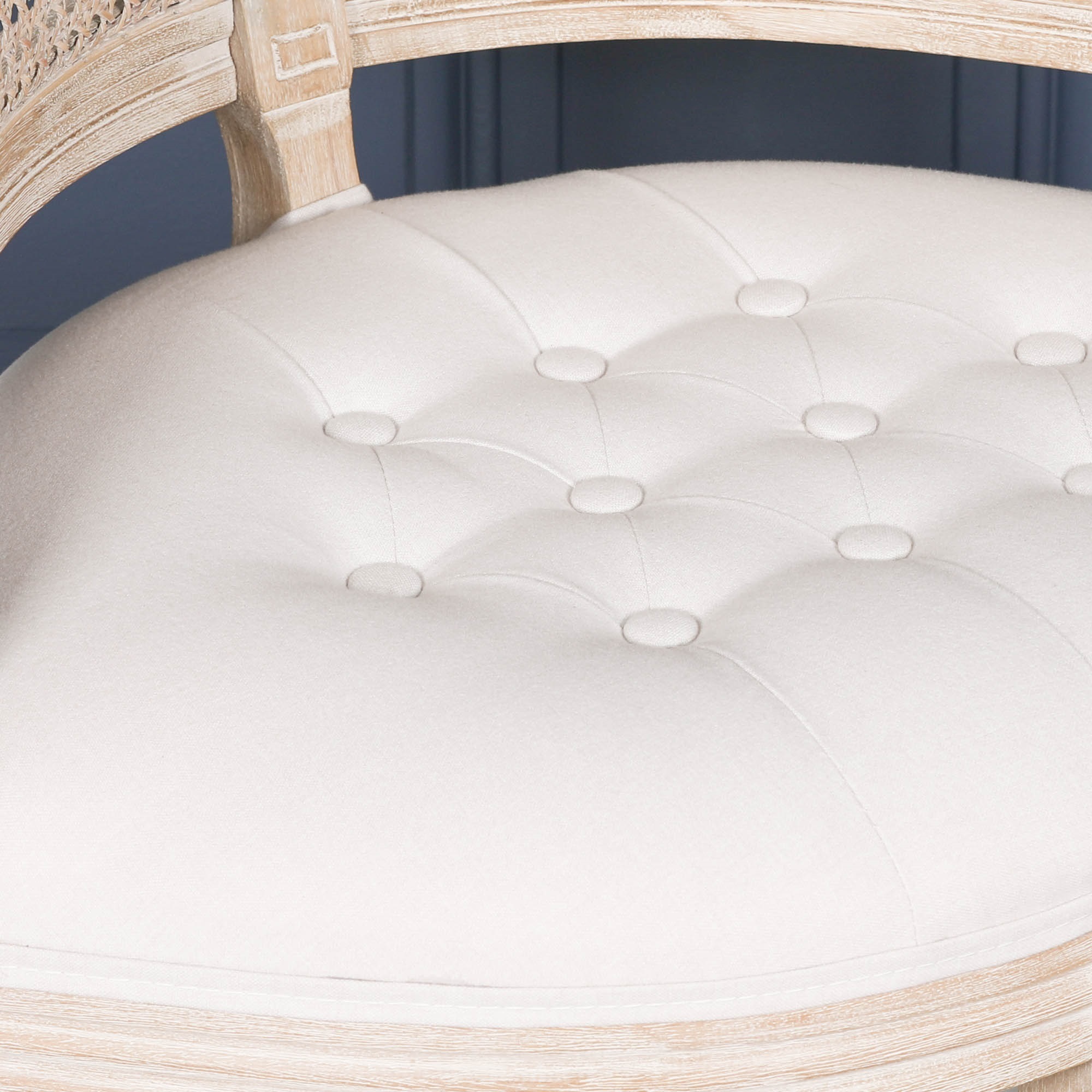 Wooden Louis corner chair in wooden finish with subtle wood washing added to the detail of the frame. Finished with a linen upholstered seat top and arm pads. The chair’s ideal placement is in the corner of living room, study or bedroom. It would also make a good dressing table chair complimenting any classical / french dressing table.
